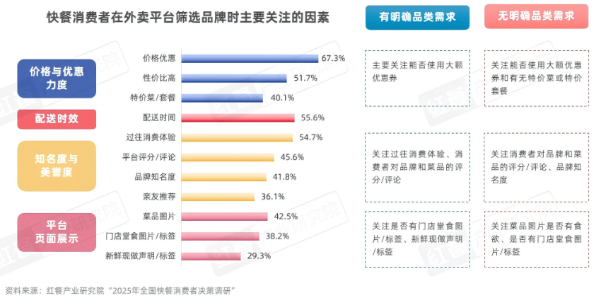 消费者在外卖平台筛选品牌时最关注价格与优惠力度