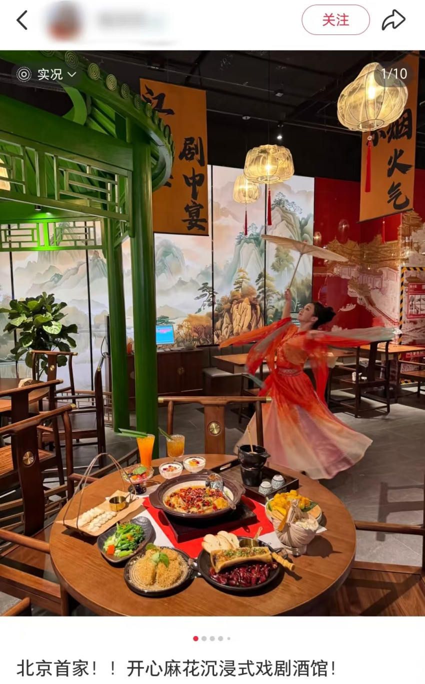 比如,今年7月,全国首家开心麻花主题戏剧餐厅“开心麻花·江湖饭局”在北京开业。在消费者用餐时,舞台同步上演戏剧《偷心晚宴》古装升级版,消费者还可参与投壶、掷骰子等互动。