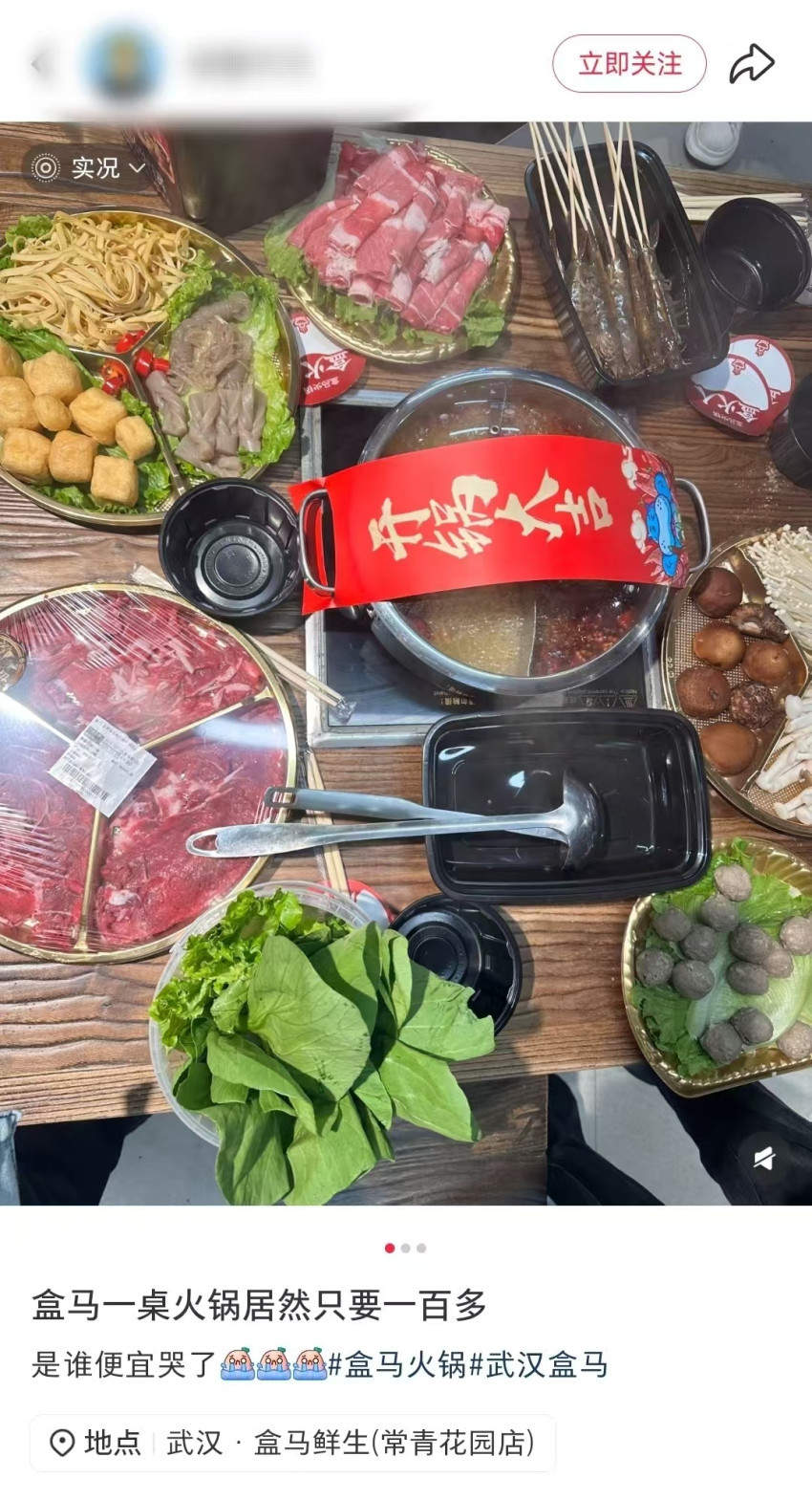 实际上,这与盒马近期启动的“火锅季”有关。据红餐网了解,自今年10月以外,盒马全国多地门店展开了系列“火锅季”活动,比如其邀请了不少网友在盒马免费吃火锅,网友们晒出的打卡照迅速刷屏社交媒体,让“超市涮火锅”成为热门话题。