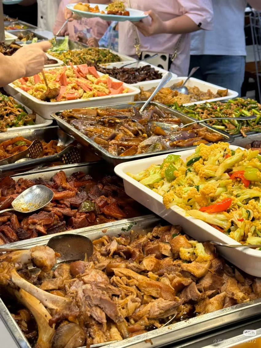 其中,快餐食堂模式凭借丰富菜品与实惠价格,成为商超吸引客流的“流量密码”。据了解,永辉超市早在2023年11月就试点食堂模式,主打平价现炒,推出“3个菜12元、4个菜15元”的盒饭套餐;北京物美超市自去年7月推出13元、19.9元两档自助餐,涵盖凉菜、热菜、汤品、水果等品类,支持堂食与打包。据有意思报告,这批超市用餐时段曾一度排得水泄不通。