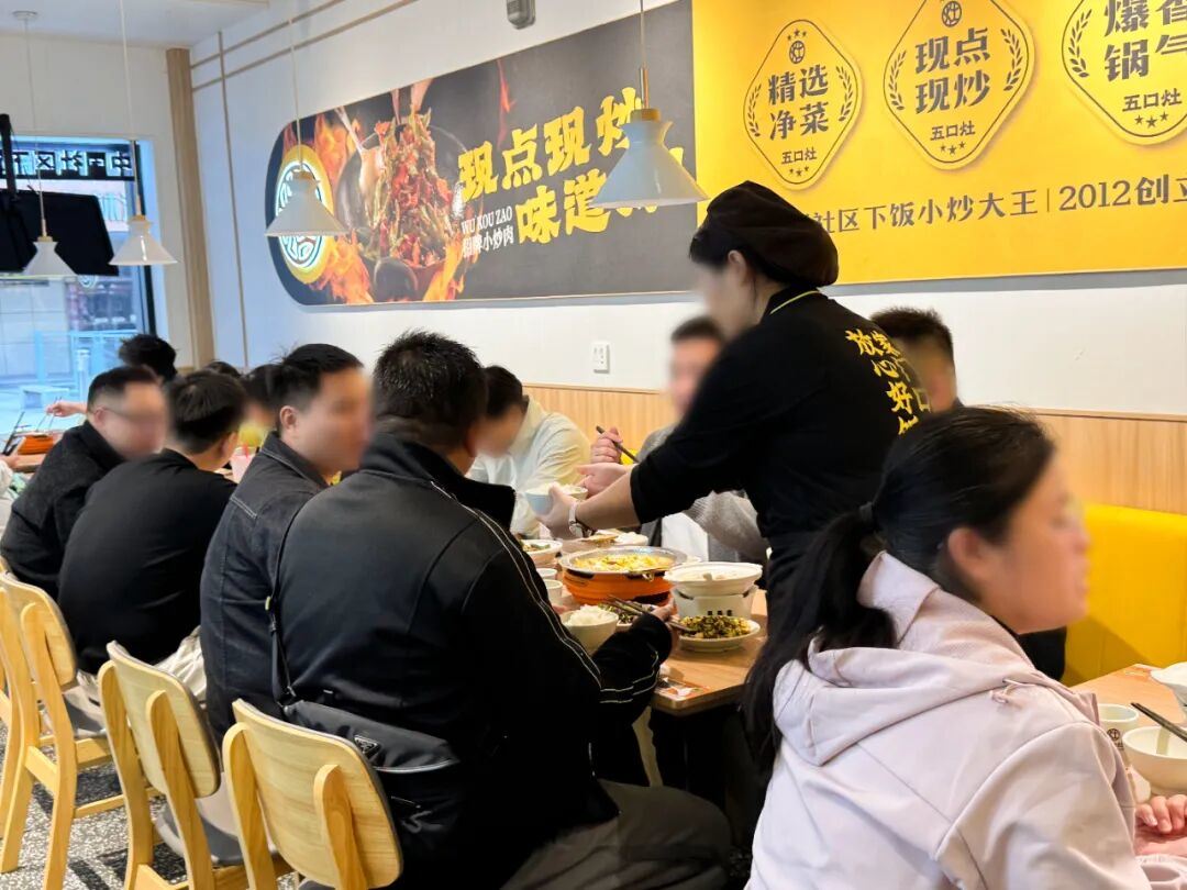 这些成绩得益于其追求极致性价比的定位。具体来看,五口灶聚焦社区客群,定位更接近平价社区食堂,但食堂只聚焦快餐场景,而五口灶的打法是用快餐的价格,做正餐的体验。