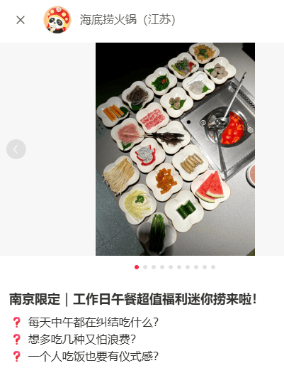 近期海底捞加码布局一人食,在南京部分门店试点推出工作日午餐迷你捞。
