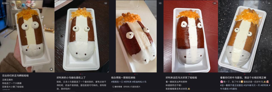 有趣的是,由于制作原因,每家门店、甚至同一门店出品的小马面包都“丑得五花八门”。不过这非但没有劝退消费者,反而催生了一场更多人参与的“选丑大赛”。