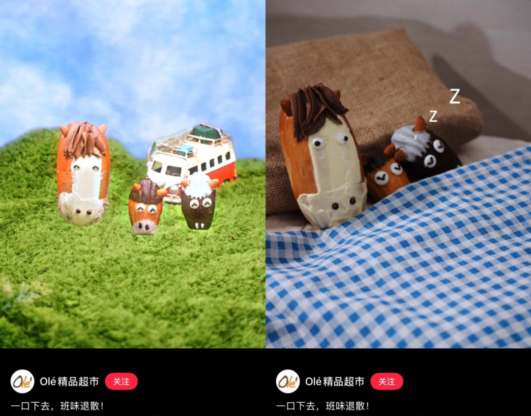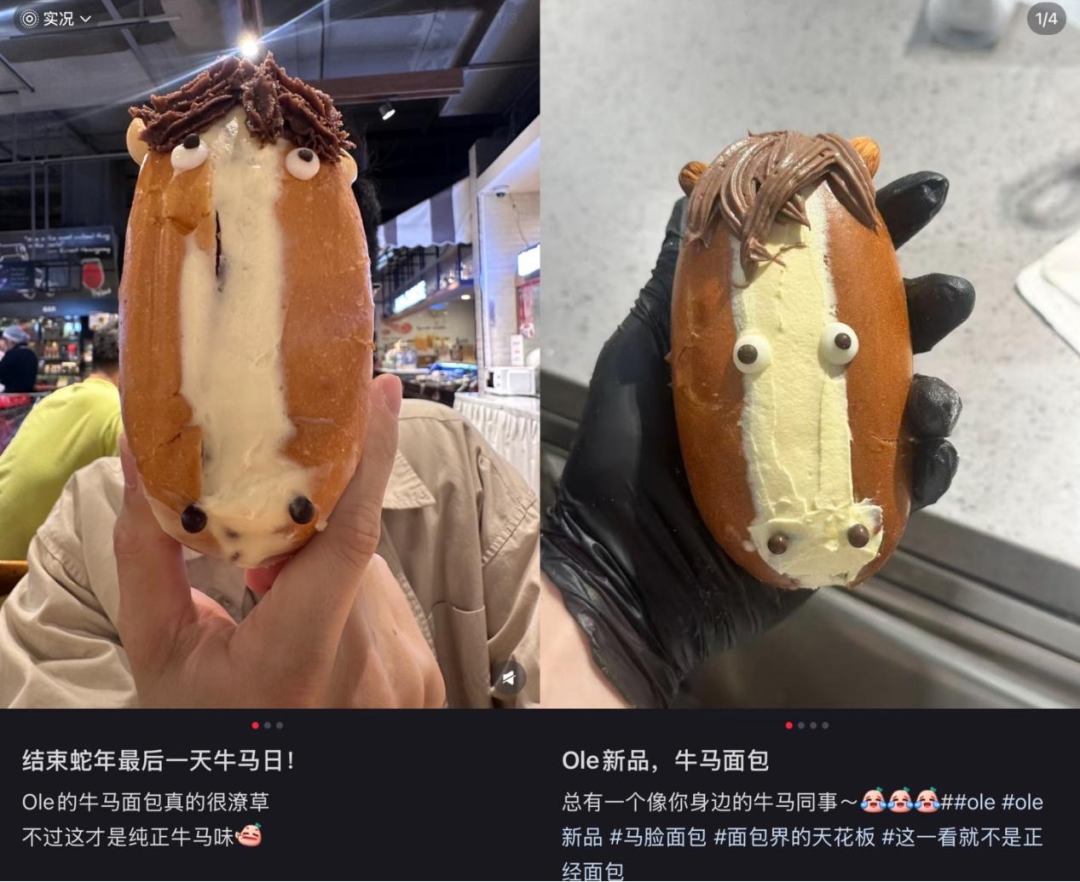 例如,ole’超市直接将新品命名为“牛马面包”“牛马蛋糕”,官方配文“一口下去,班味退散!”。