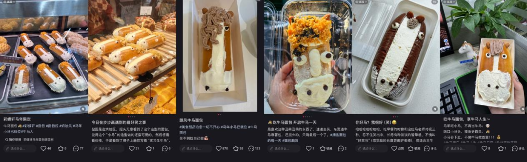 另一方面,牛马面包还精准切中了消费者的“打工人”情绪。过年前后这段时间,正是上班族对“牛马”这个词语最敏感的时候,品牌将面包和这种社会情绪绑定,让“牛马面包”成为了消费者的一种身份认同和情绪出口。