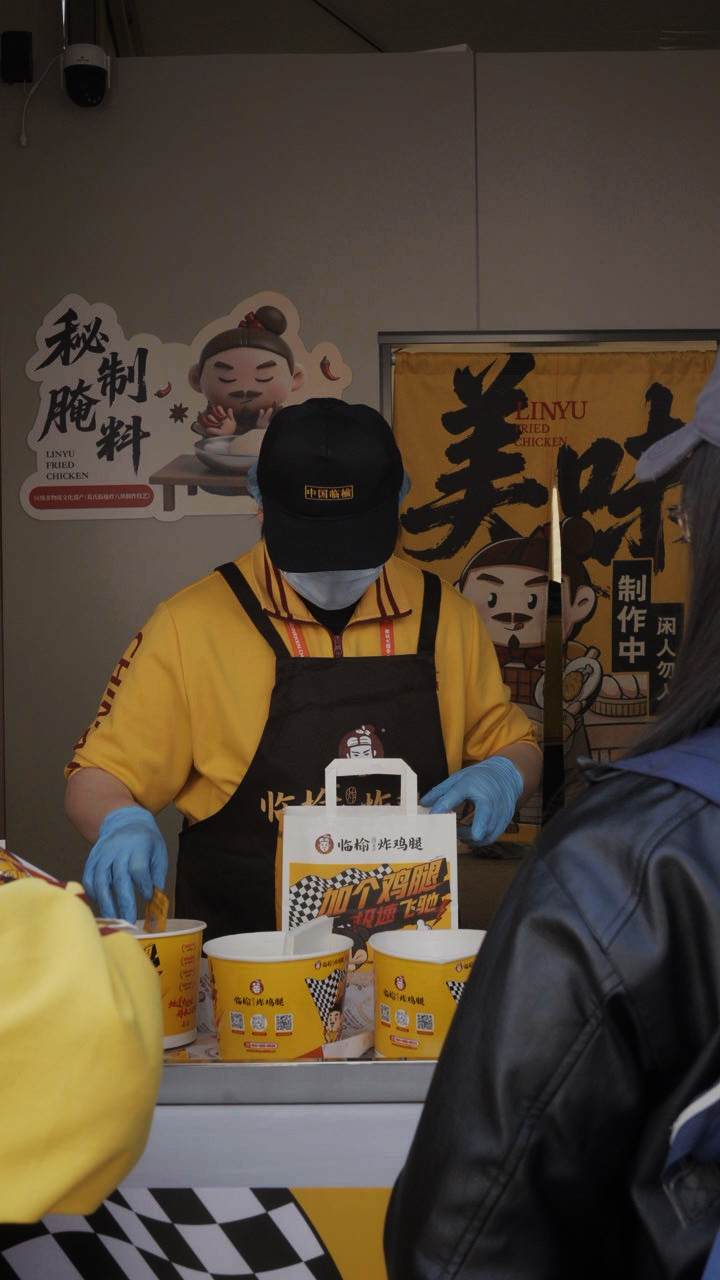 上海迎来“赛事热”,上海国际赛车场内也吸引了大批商户入驻,售卖周边、提供餐饮服务。作为上海市嘉定区企业,中式炸鸡品牌临榆炸鸡腿也首次在F1赛场亮相,分别在水景广场、K区、B区设置快闪店,为国内外观众带来具有中国特色的美食体验。
