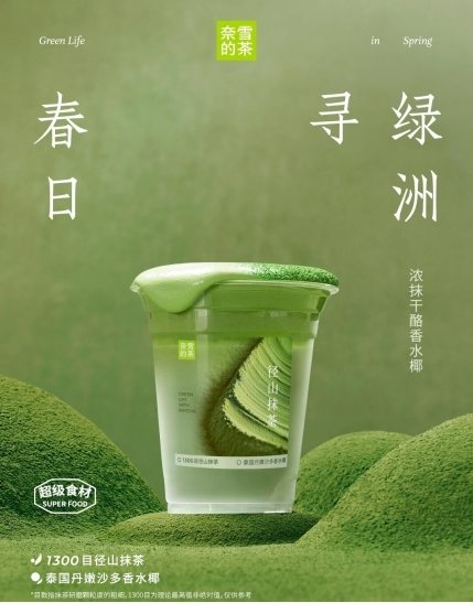抹茶自带微苦鲜爽风味,进入“千目时代”后,与咸法酪、咸芝士的搭配推向“鲜咸回甘”新味型。高目数抹茶及贵州铜仁等地方特色抹茶,成为品牌差异化卖点,其应用从茶底拓展至奶盖、奶油顶,形成强烈视觉冲击。