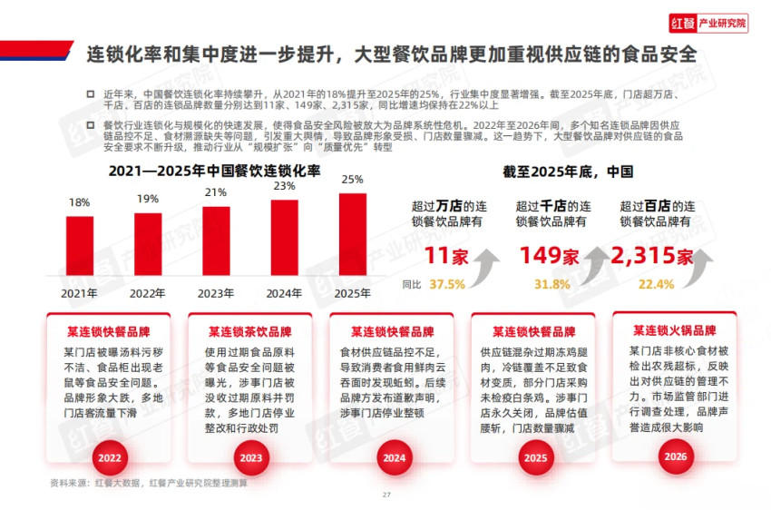 毕竟,在一些“强扩张、弱管理”的冒进模式下,食品安全是最容易被牺牲的环节 —— 用便宜原料、省略检测流程、外包供应链,可大幅降低成本,却埋下品牌崩塌的隐患,也加剧了加盟商和餐企总部之间的纠纷。