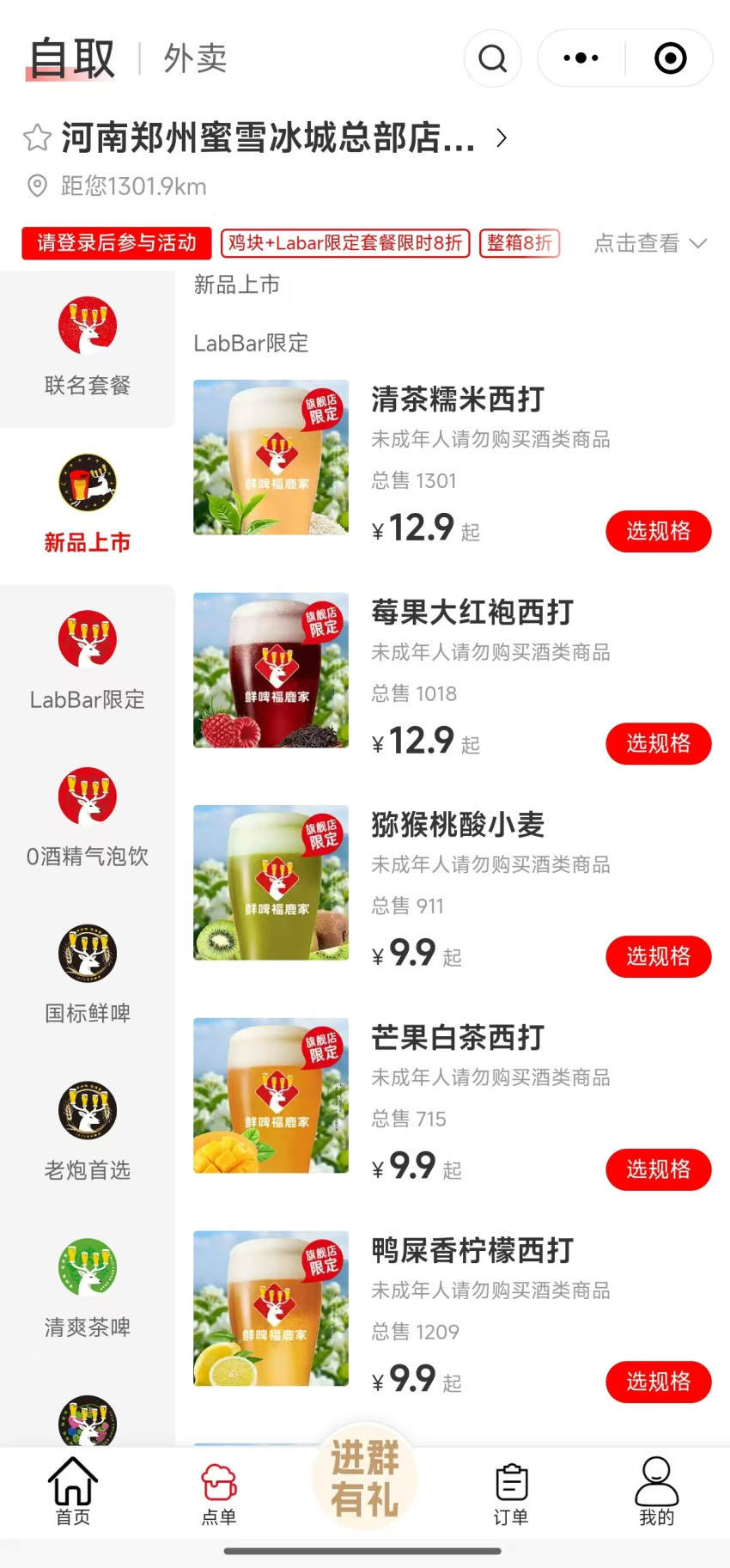 值得关注的是,该旗舰店在产品线上做了扩充升级,SKU比起品牌常规门店更加丰富多元。比如饮品方面,旗舰店在保留了德式小麦、福鹿鲜啤、菠萝啤等人气爆款单品的基础上,还推出了清茶糯米西打、猕猴桃酸小麦、芒果芭乐果泥等12款旗舰店限定饮品,SKU多达30多种,单杯售价在5.9-15.9元之间,延续了品牌一贯的性价比路线。除了饮品以外,旗舰店还上线了香脆炸物、爽口凉菜、佐酒小食等多个系列的下酒菜,包括椒麻小酥肉、锅巴土豆、手撕鸡、香辣毛豆等14种菜品,单碟价格在12.9-32.6元不等。