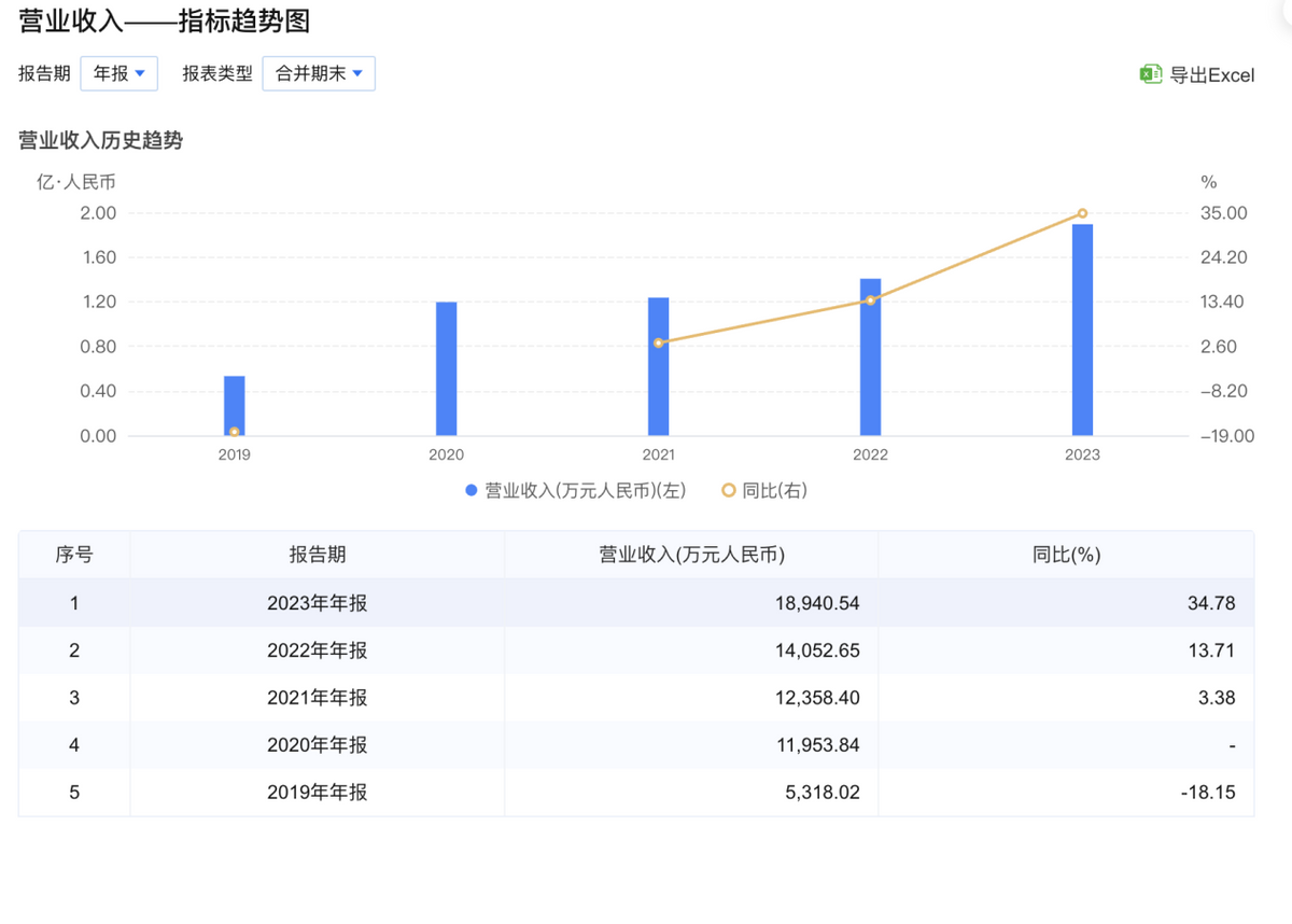 根据企业预警通显示,2019年-2023年报显示,皖新租赁的收入分别为0.53亿元、1.195亿元、1.235亿元、1.4亿元、1.89亿元,2021-2023年同比增长为3.38%、13.71%、34.78%。2019年-2023年报显示,净利润分别为:1660万元、3870.81万元、4625.70万元、6050.76万元。