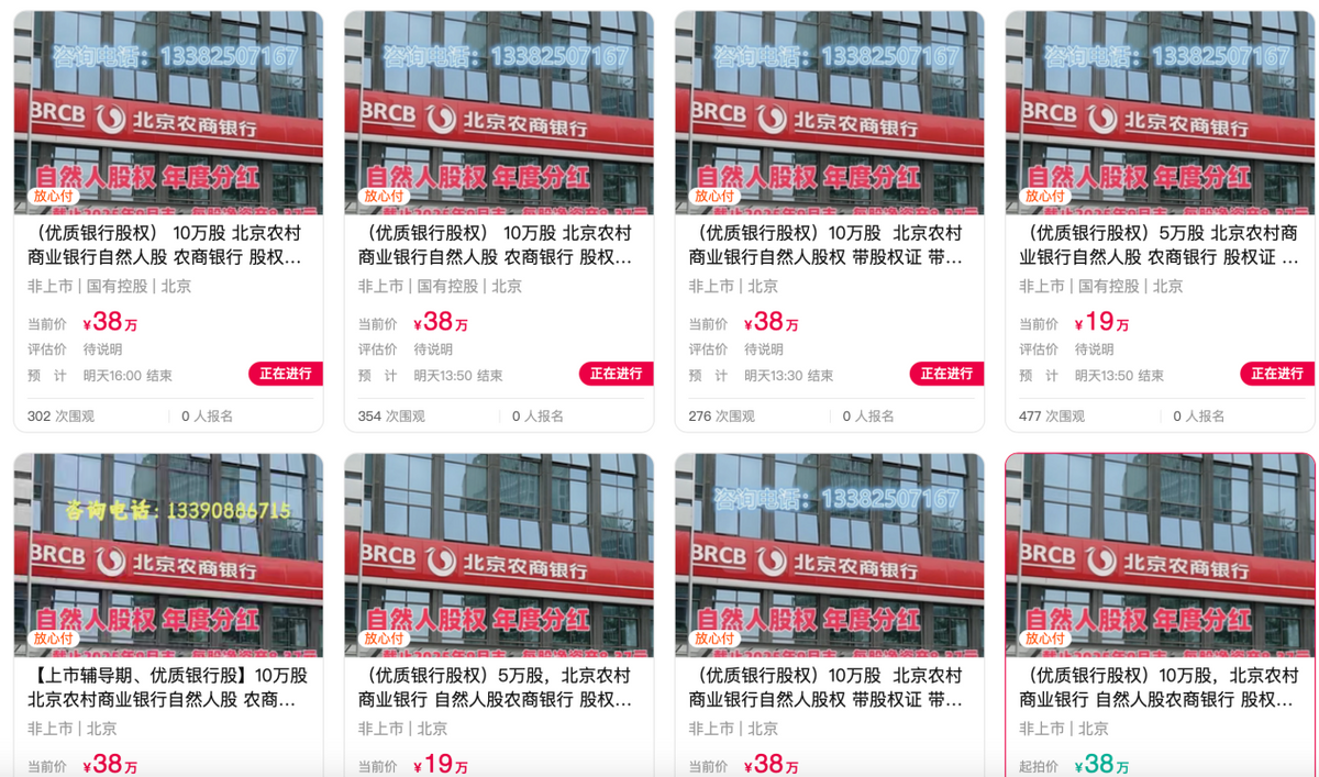 IPO筹备多年未果,北京农商行自然人股权拍卖遇冷