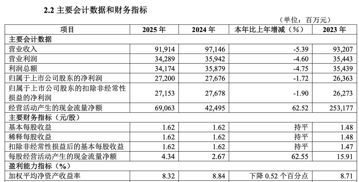 3月30日晚,华夏银行发布2025年年报。据年报显示,2025年,华夏银行实现营业收入919.14亿元,实现归母净利润272.00亿元。经营活动现金流净额为690.63亿元,同比增长62.52%。