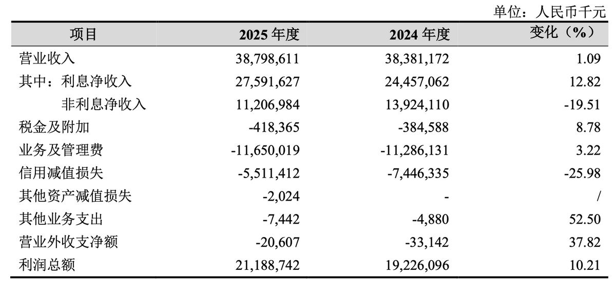 4月22日晚,杭州银行(600926.SH)发布了 2025年年报。据年报显示,2025年,杭州银行实现营业收入387.99亿元,同比增长1.09%,其中利息净收入275.92亿元,同比增长12.82%,手续费及佣金净收入42.07亿元,同比增长 13.10%;实现归母净利润190.29 亿元,同比增长12.05%。