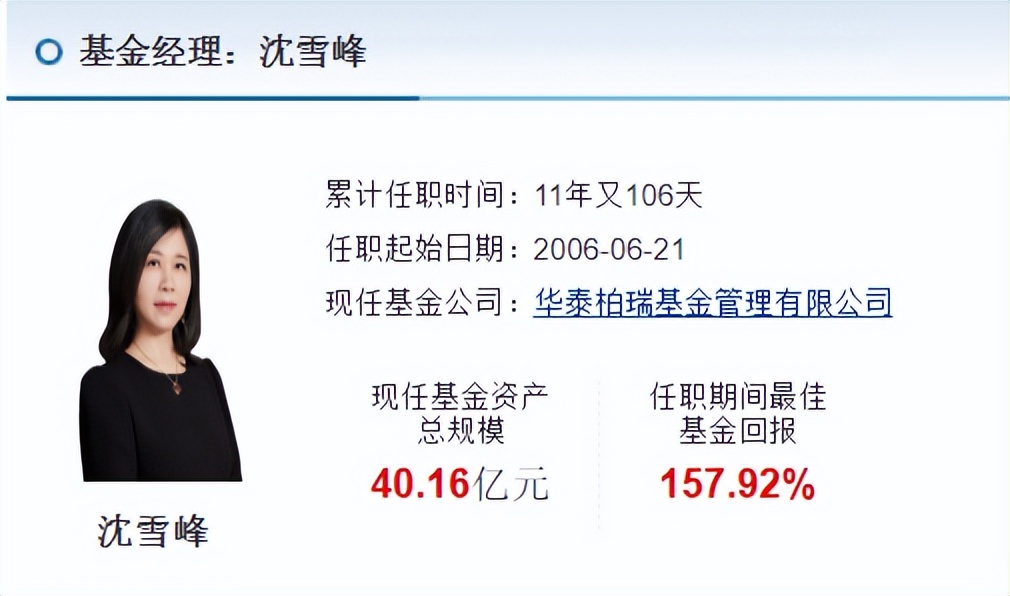 在知乎上,有个网名安娜2012的人,2022年12月11日,发文称:2020年,指数在高位,她思考很久,决定半仓换入一款主动基金,另一半清仓等底部信号。当时,她选择了沈雪峰管理的华泰柏瑞激励动力。