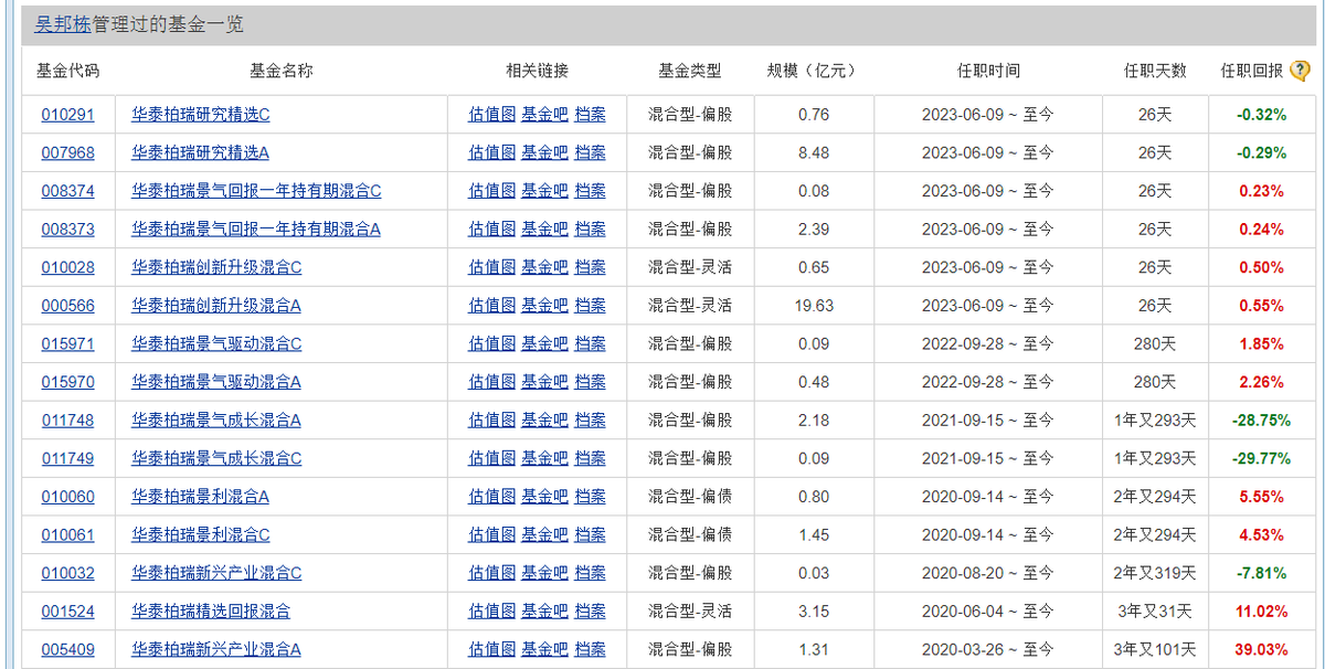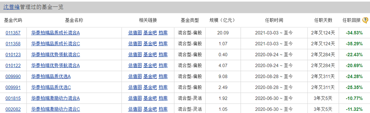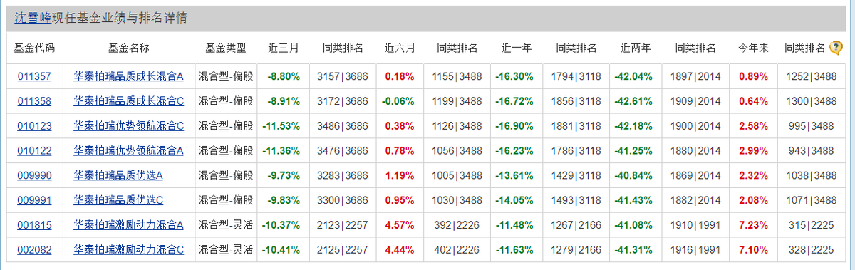 它们分别是:华泰柏瑞成长智选混合C、华泰柏瑞远见智选混合C、华泰柏瑞成长智选混合A、华泰柏瑞远见智选混合A、华泰柏瑞基本面智选C、华泰柏瑞基本面智选A。