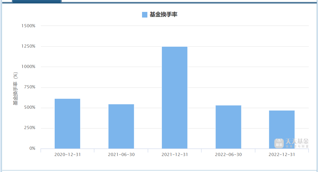 这只基金的换手率也确实不低,2021年换手率高达1252.97%。相比较而言,牛勇管理的的华泰柏瑞远见智选混合,持仓换手率就相对低了许多。