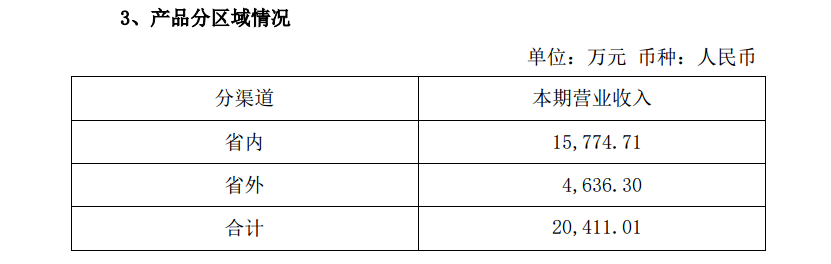 以三季报为例,口子窖的省内收入占全部收入80%以上,迎驾贡酒的省内收入大概占到65%左右,金种子酒的省内收入大概占到全部收入的77%。