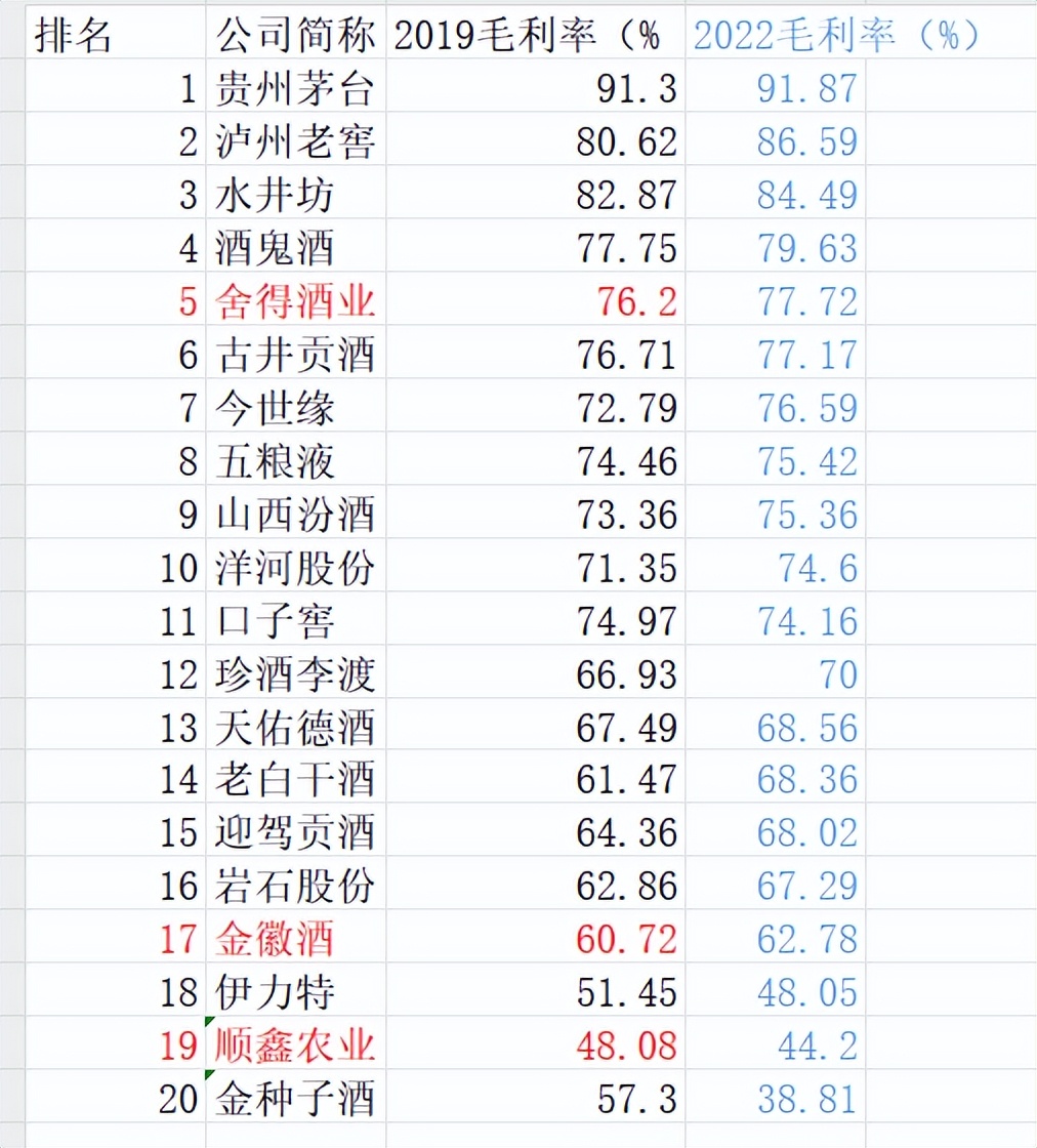03、毛利率偏低上半年仅40%,在20家白酒上市公司中倒数第一