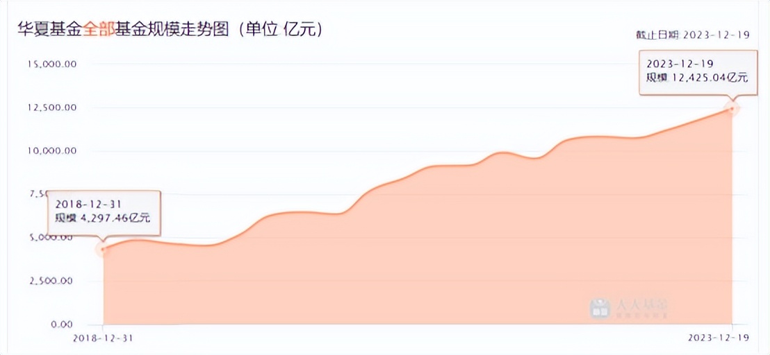 公开数据显示,截至2023年12月19日,华夏基金资产规模1.24万亿,在206家基金公司中,排名第三。