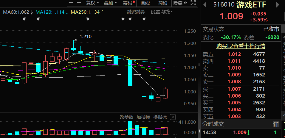 近日,受有关部门《网络游戏管理办法》(征求意见稿)影响,游戏板块股价出现大幅下跌,这并不改资金长期看好,游戏ETF盘中吸引了大量资金进场抄底。