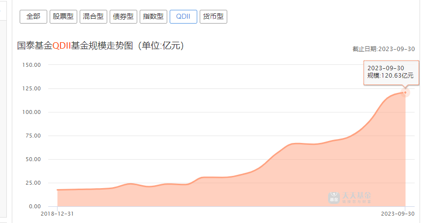 相反,其QDII规模扩张就一直不温不火,目前120.63亿。