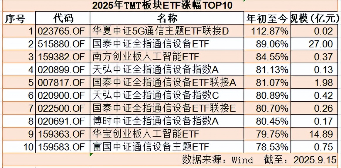 Wind数据显示,年初至今涨幅仅次于港股通创新药ETF的板块是TMT。
