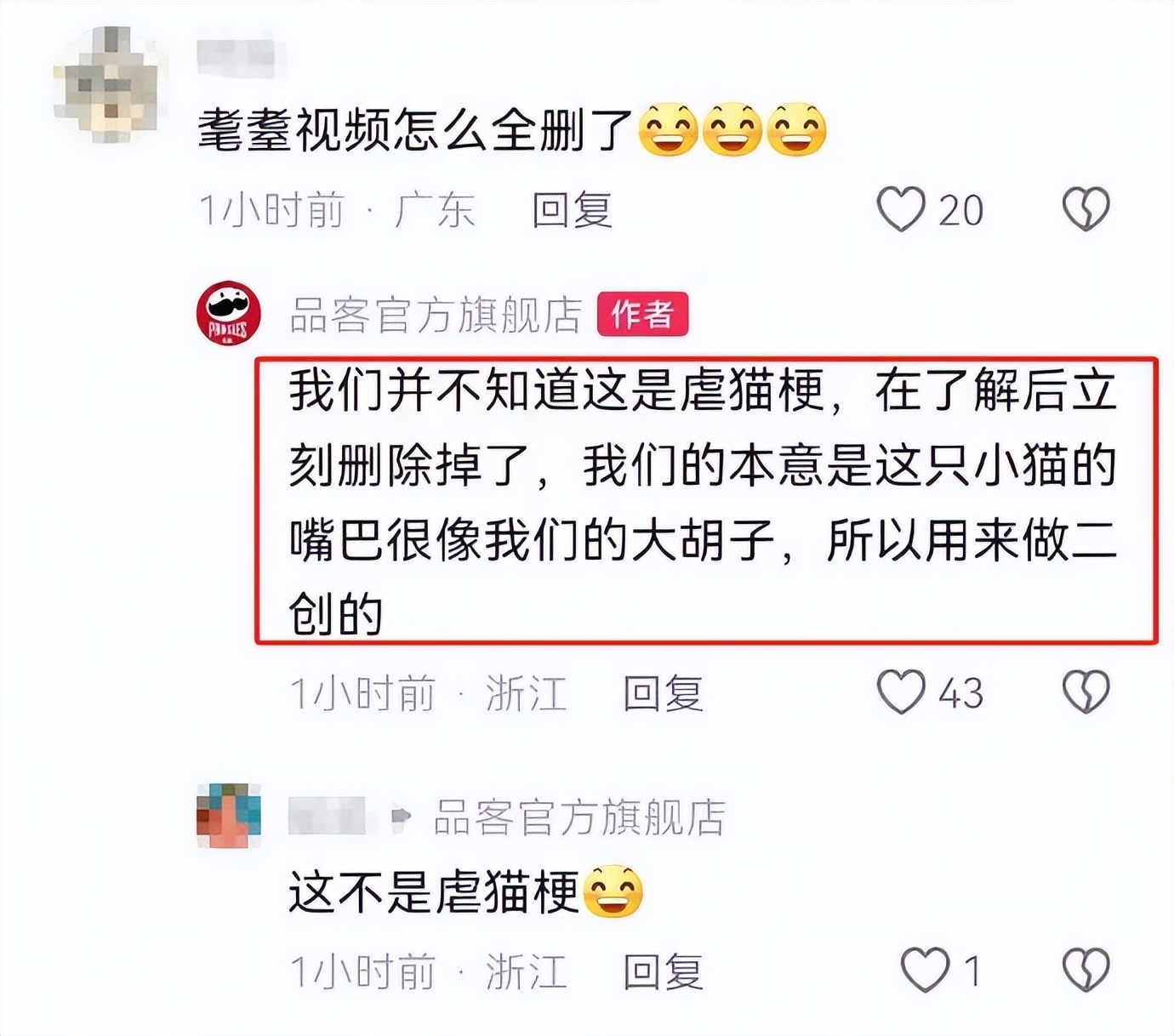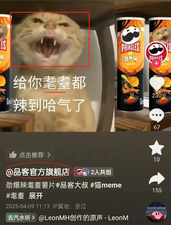 再说个有趣的事情,品客说我也干了。本来哈基米这个梗加入到品牌是品客先弄的,但是因为害怕涉及到“虐猫梗”光速滑跪了,结果被九阳狠狠赚了一波流量。