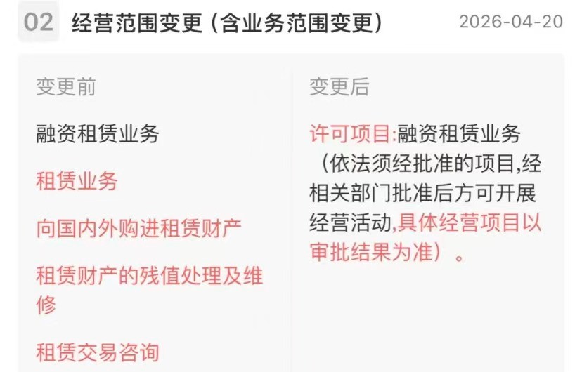 为了此次赴美上市,大搜车进行了主动的自我清理。2026年3月,浙江省地方金融管理局批复同意浙江大搜车融资租赁有限公司变更经营范围,这被视为公司在合规层面主动收窄金融业务边界、配合上市备案需求的关键一步。