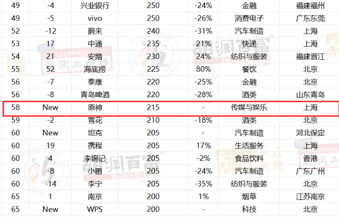牌面拉满了,原神登上胡润品牌榜,榜上唯一一款游戏