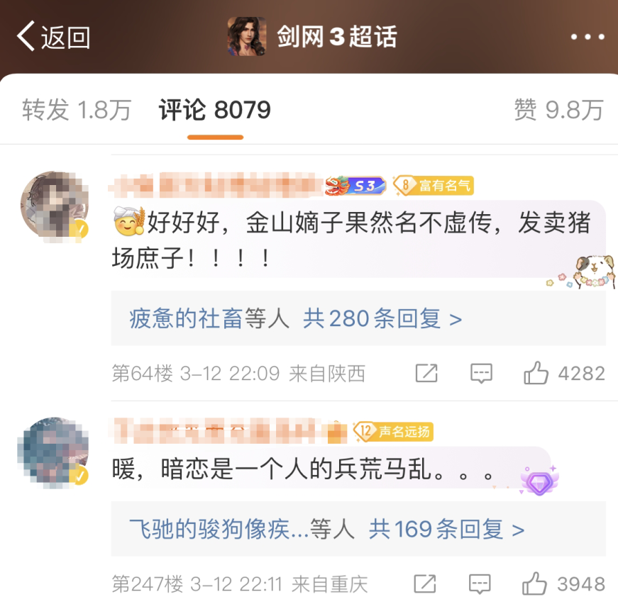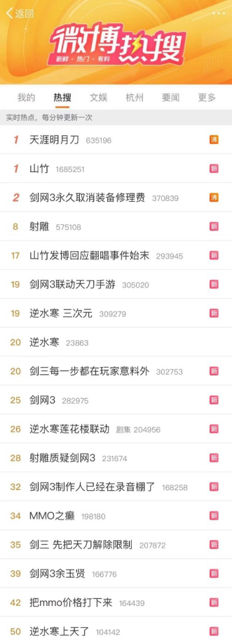 剑网3制作人也高频上热搜