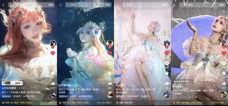 这些人是电竞、校园、二次元以及职场圈很有辨识度的优秀女性,进一步加深了特定领域对“梦海之灵”、“公主”、“女生优选pick”的认知。而PEL官方主持人王游方、演员养猪倪倪,颜值博主欣欣ye、头部网红不吃奶露拖等更多圈层的优秀女性KOL更是集体参与#坠入海岛一秒变公主挑战。