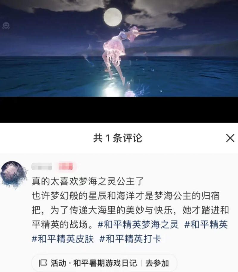同时,在小红书、抖音等女性用户聚焦较多的场景中,《和平精英》还针对“梦海之灵”设计了内容征集活动,以此激发出已经被“梦海之灵”打动的女性用户表达欲,对应我们能看到有诸多玩家分享在游戏拍摄功能下录制的视频,进而引爆了二次传播。