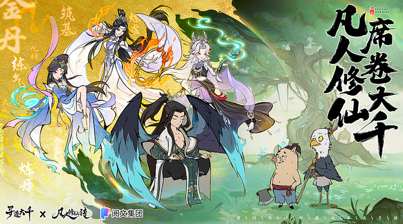 再比如《寻道大千》与《凡人修仙传》的联动,两个IP本身都有修仙阶段的概念,同时又都在讲“小人物”历经艰难崛起的故事,“不问出身、打破命运、追求大道”的理念完美契合。