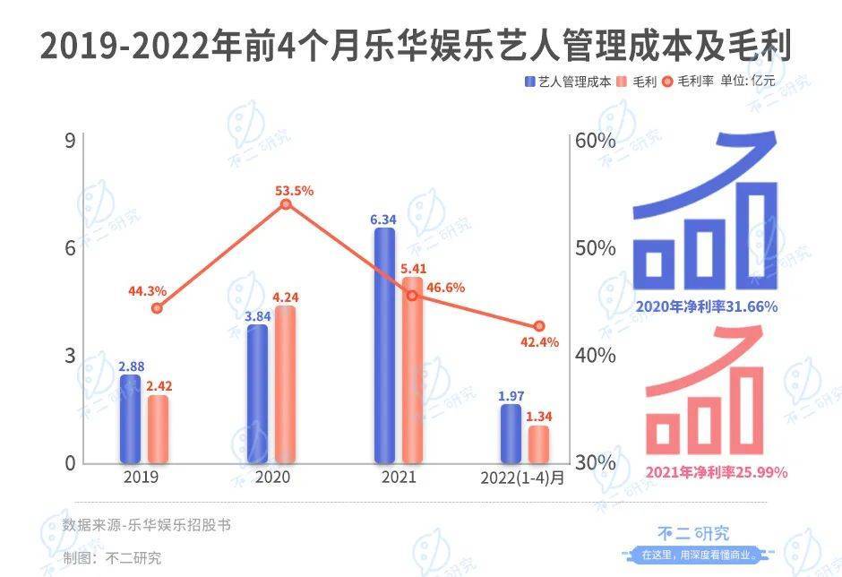 此外,据招股书显示,2019-2021年及2022年前4个月,艺人管理的成本分别为2.88亿、3.84亿、6.34亿和1.97亿元,复合年增长率为33.43%和65.27%,2021年较2020年有所提高。