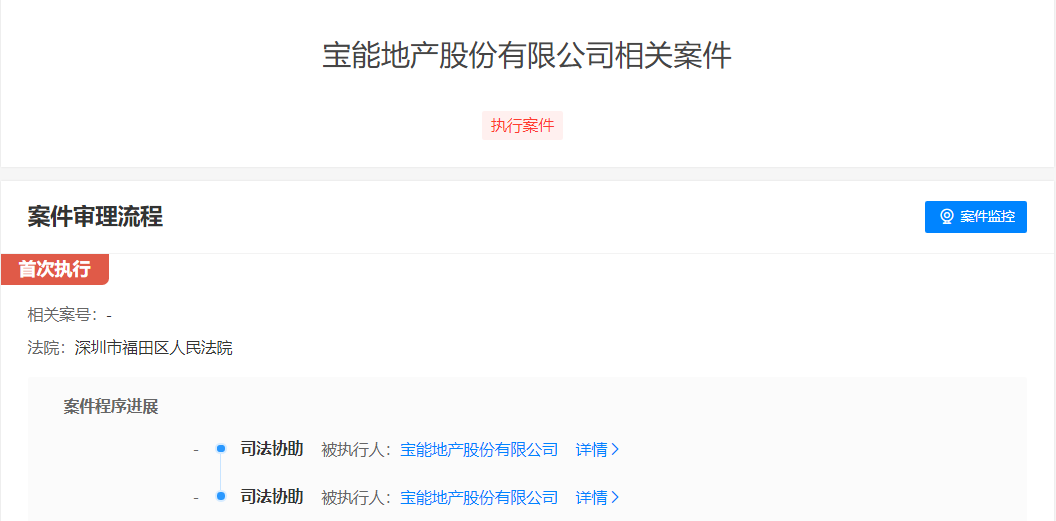 具体来看,被执行人均为宝能地产,股权被执行企业均为宝能城发,执行法院均为深圳市龙华区人民法院。