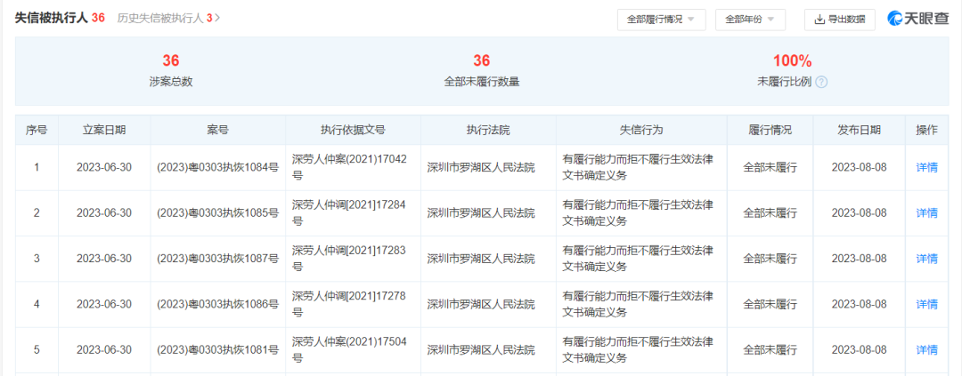 天眼查显示,2023年上半年,宝能城发多次被列为失信被执行人,失信行为均为有履行能力而拒不履行生效法律文书确定义务。
