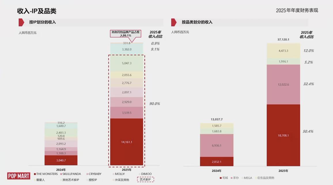 3月25日,泡泡玛特国际集团发布2025年财报。2025年,泡泡玛特创下业绩新高,总营收371.2亿元,同比增长184.7%;经调整净利润130.8亿元,同比增长284.5%。