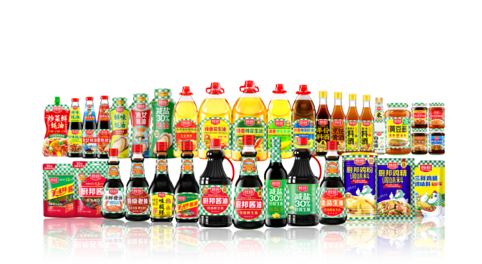 厨邦目前已经形成了多元化的产品矩阵,产品涵盖酱油、蚝油、鸡粉鸡精、酱类、料酒、醋类、食用油、腐乳、味精、汁类、复合调味料等10多个品类、100多个品种、300多款规格产品。厨邦酱油传承南派酱油工艺,“厨邦酱油美味鲜,晒足180天”的广告语为大众熟知,“绿格子”符号连系了几代人的深刻记忆,成为了新中式厨房里的“国潮”。