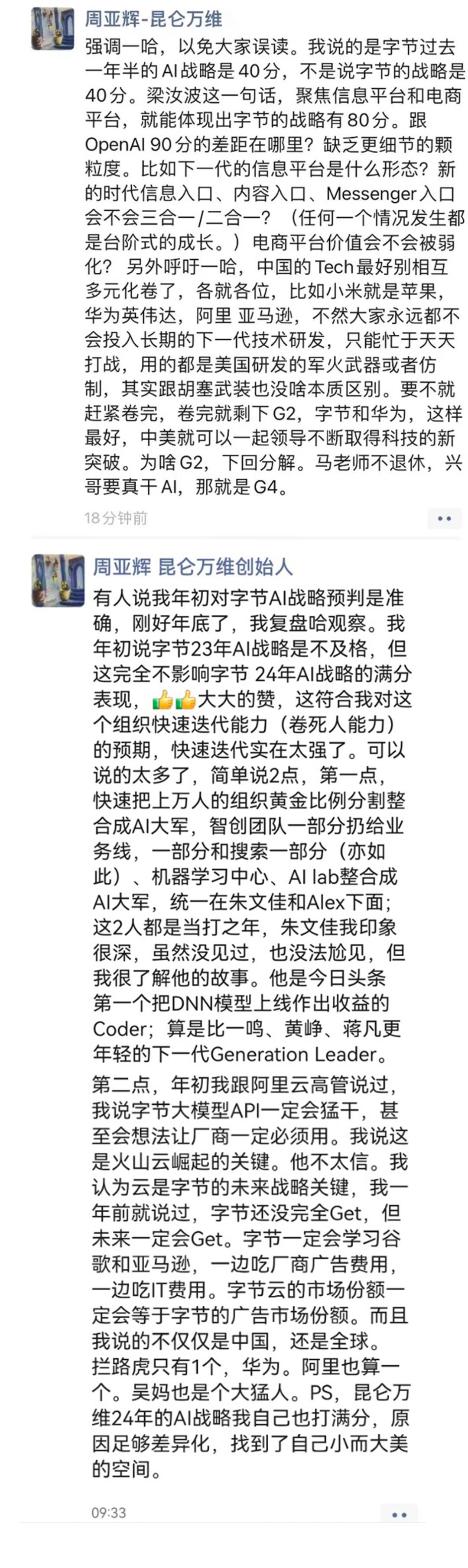 周亚辉:字节AI战略满分,昆仑万维小而大美