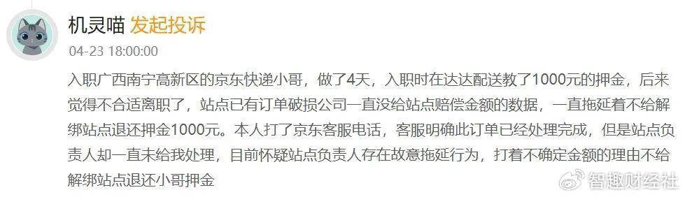 在黑猫投诉等平台,有不少京达骑士投诉京东物流和达达客服的帖子,他们的痛点集中在离职不退押金、无故罚款等。