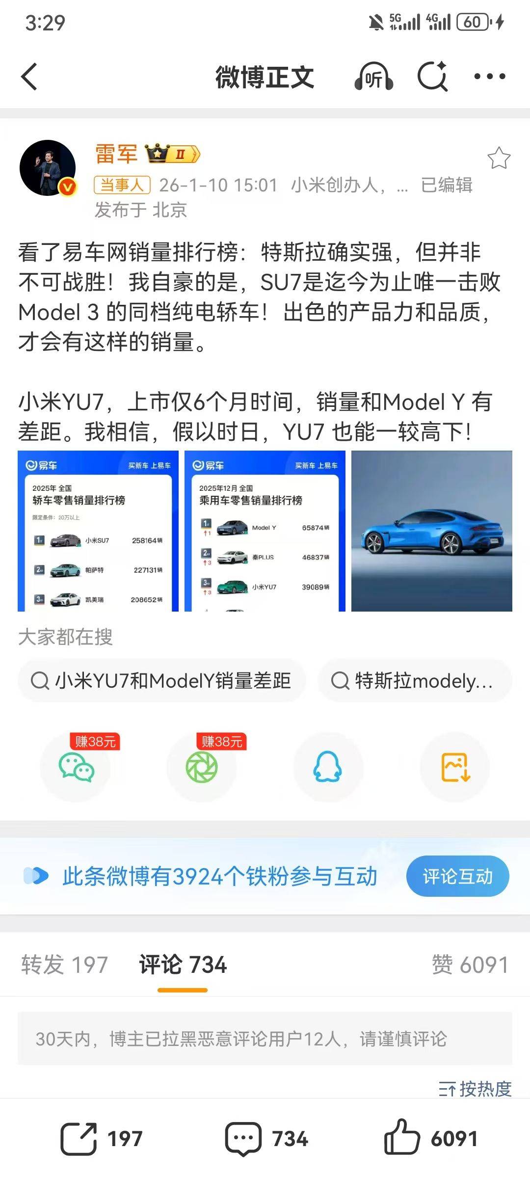 就是不知道后续会不会影响小米汽车的销量。