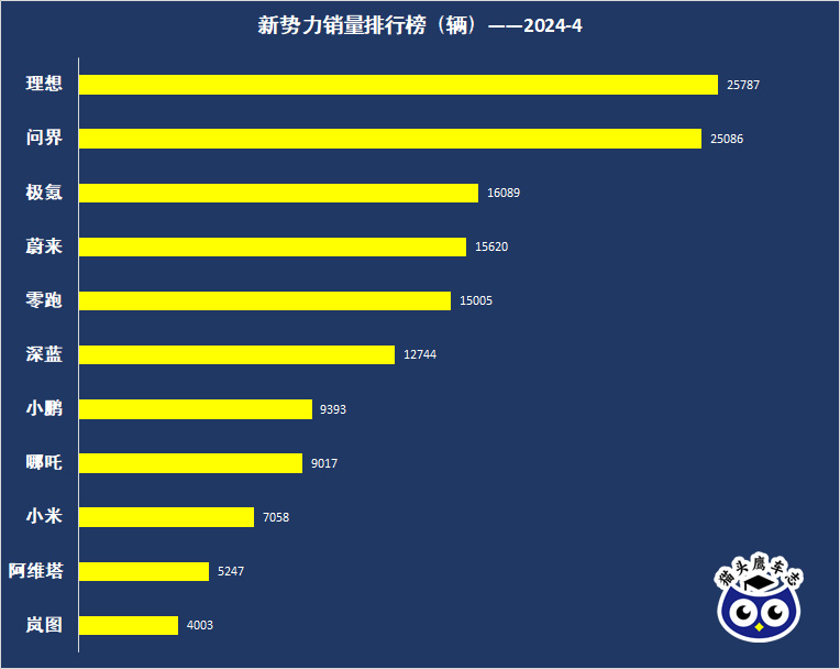造车新势力4月排行榜:理想反超问界,小米汽车搅局
