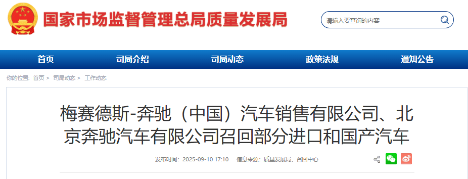 近日,国家市场监督管理总局发布的公告显示,梅赛德斯-奔驰(中国)汽车销售有限公司及北京奔驰汽车有限公司启动召回计划,涉及GLC、EQE、EQB三款车型共316辆。