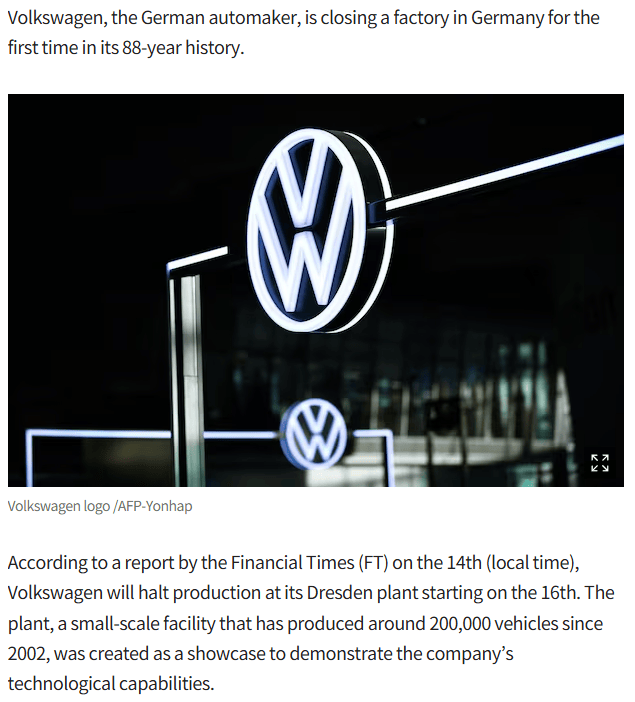 历史性时刻!大众汽车88年来首次关闭德国本土生产线