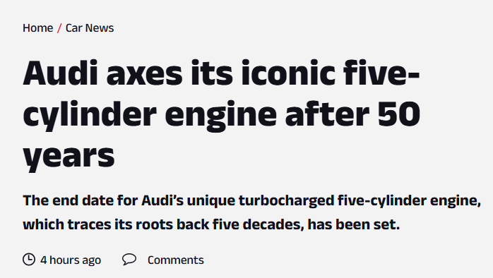 奥迪将停用标志性五缸发动机 近50年辉煌终成历史