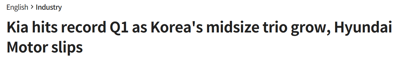 现代汽车3月全球销量358759辆,同比下降2.3%;而起亚汽车全球销量达285854辆,同比增长2.7%,并创下一季度销量历史新高。