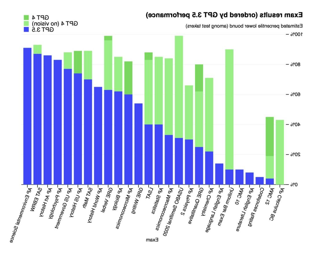 在模拟律师考试中GPT-4取得了前10%的好成绩,相较于GPT-3.5倒数10%的成绩可谓是质的飞跃。并且GPT-4在美国高考SAT的阅读写作中拿下710分高分。