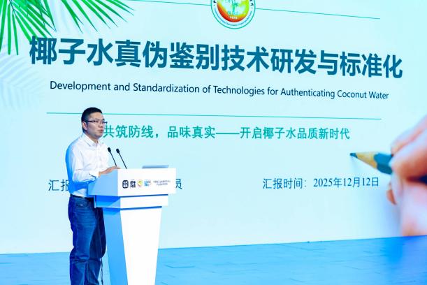 发布会上,据中国热带农业科学院椰子研究所产业发展部主任邓福明介绍,通过稳定同位素指纹技术可为椰子水贴上身份证,有效识别掺假行为,“通过先进的稳定同位素指纹技术,可以为椰子水‘验明正身’,‘让其回归本源’。这项技术的原理在于,食品中的碳、氢、氧等稳定同位素比例会像‘地理身份证’和‘生物过程记录仪’一样,留下独特的印记。”