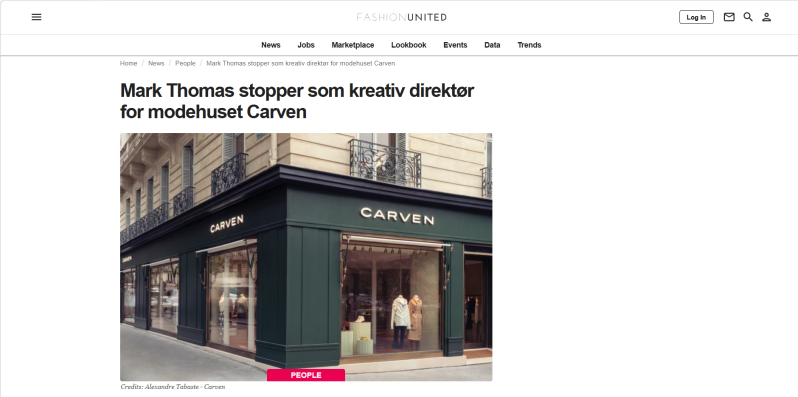 公告报道显示,Mark Thomas于2023年加入Carven,担任高级设计师,也是Louise Trotter的得力助手。后接替了转投Bottega Veneta的Louise Trotter,并于2025年3月成为Carven的创意总监。