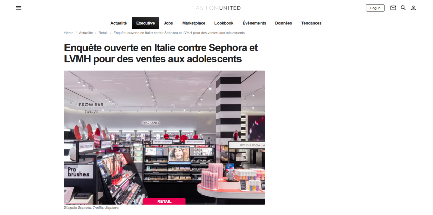 近日,据fashionunited等媒体报道,意大利反垄断机构宣布对LVMH集团及旗下的丝芙兰(Sephora)和贝玲妃(Benefit)展开调查,原因是涉嫌向儿童和青少年推广使用护肤品。